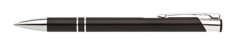 ALBA je velmi oblíbená hliníková reklamní tužka.Černé, matné tělo se dvěma stříbrnými proužky a chromovými doplňky. Velkoobsahová modrá náplň.