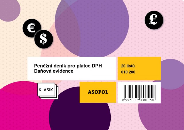 - ASOPOL 010200 Daňová evidence Peněžní deník pro plátce DPH B4, 20 listů