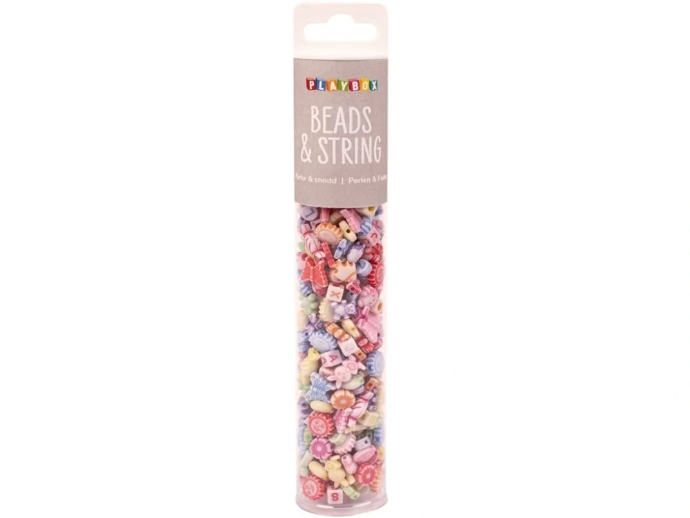 - Barevné plastové korálky v tubě + šňůrka, 350 ks, pastelové