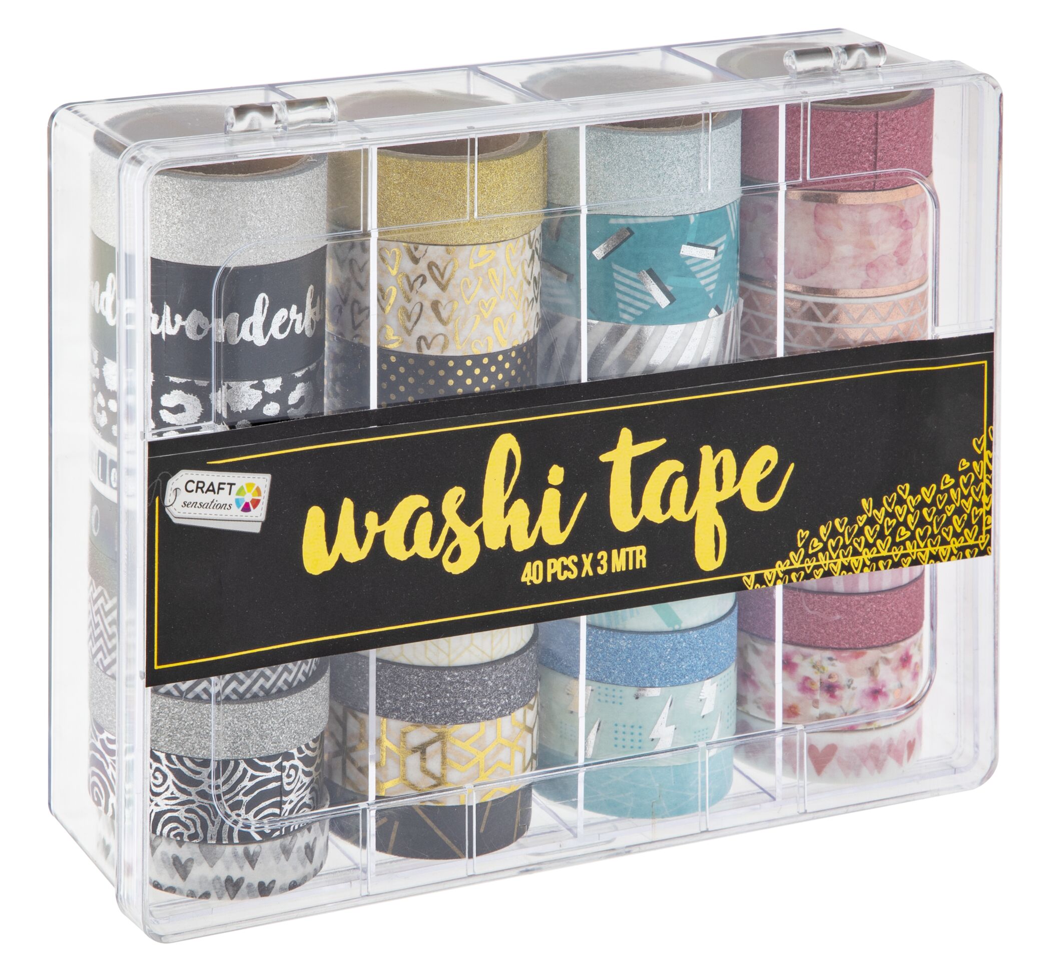 - Dekorační lepicí páska - Washi pásky 3m, 40ks v boxu - třpytivé