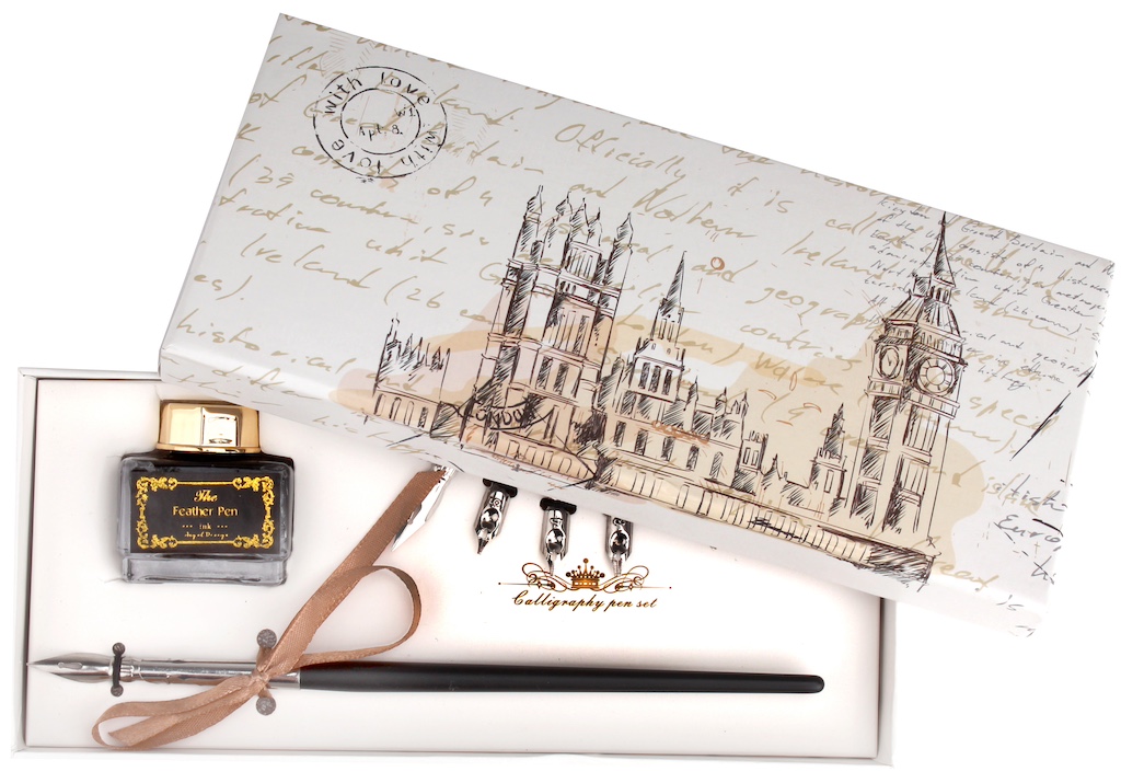 Kompletní kaligrafická sada – pero, výměnné hroty, inkoust (případně další příslušenství dle skutečného obsahu)