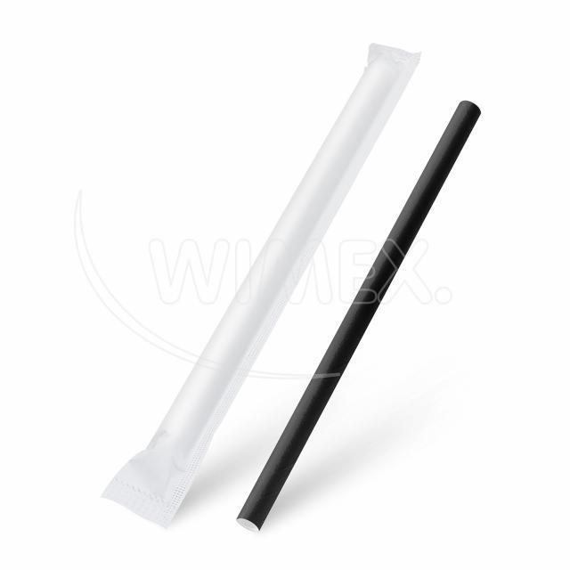 Slámka papírová černá JUMBO Ø12mm x 21cm jednotlivě balená [100 ks]